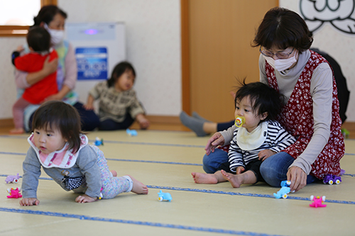 安心できる保育士との関係のもとで、おもちゃ遊びや絵本の読み聞かせ、外遊びなどを楽しみ、発達段階に合わせた保育をしています。