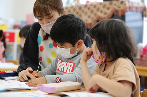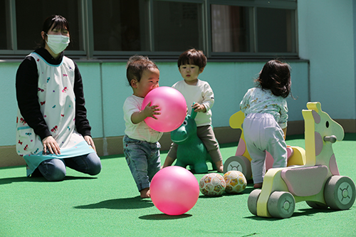 蒲池保育園では、子ども一人ひとりの成長を丁寧に見守るため、専門性をもった職員が連携しながら保育にあたっています。