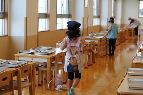 給食の時間には、お当番さんが配膳を行います。