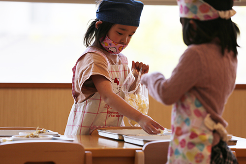 みんなで支え合う食卓は、小さな社会の第一歩です。