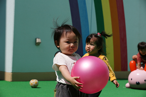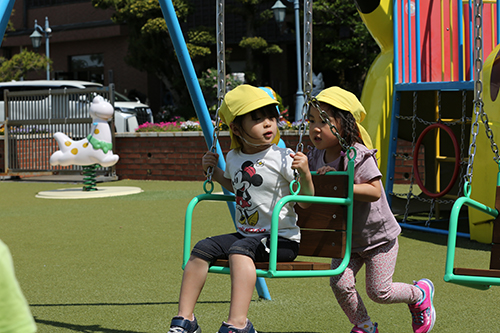 土の園庭とは違い、表面がやわらかくクッション性があるため、転んでも大きなけがにつながりにくいのが特徴です。